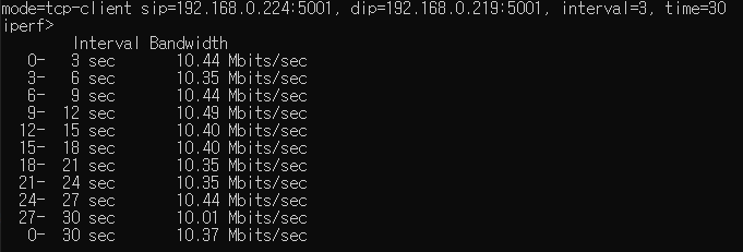 아래 결과는 Iperf를 사용한 테스트 결과이다.
