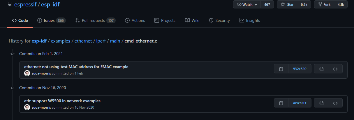 2020년 11월부터 ESP32 IDF github(https://github.com/espressif/esp-idf)에 W5500의 Mac raw 모드를 Ethernet Interface로 지원하기 시작했다.