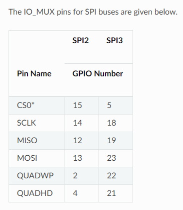 Try to use IOMUX pins to increase the frequency limit, or use the half duplex mode.이번 예제에서는 26.7MHz 이상도 테스트를 해보기 위해서 SPI3 설정으로 연결했다.
